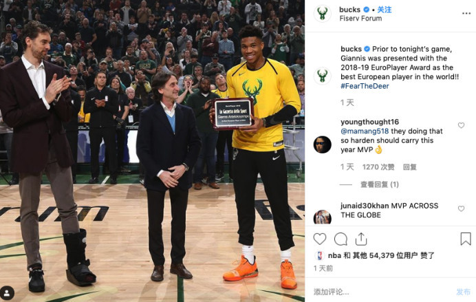 这个赛季,阿德托昆博的表现有目共睹,如今他和詹姆斯-哈登的MVP争夺,也进入到了白热化阶段。不过,如今的阿德托昆博已经得到了一个奖,那就是2019年的最佳欧洲运动员奖。在阿德托昆博的带领下,雄鹿成为了本赛季NBA唯一一支拿到60胜的球队。