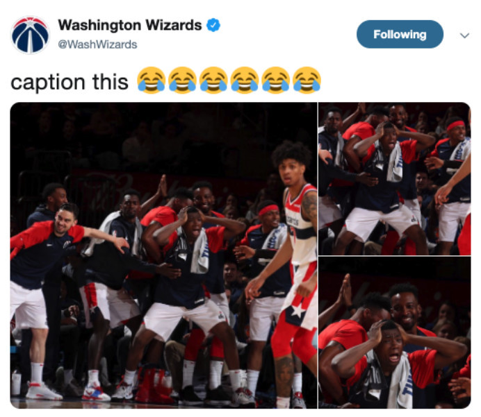 奇才队上场输给了纽约尼克斯队,两队都和季后赛已经没有了太大关系,这场比赛,对于双方来说,并没有特别重要的意义。不过,比赛过程中,托马斯-布莱恩特一个非常夸张的表情,还是引起了人们的注意。在社交媒体上,奇才官方也晒出了这样一张照片,然后写道,“给这起个标题。”