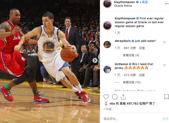 对于勇士很多球员来说,甲骨文球馆都是他们梦想开始的地方,在社交媒体上,克莱-汤普森就晒出了他当年的照片,以及上场比赛中的照片,然后写道,“第一次在甲骨文中心球馆,还有最后一次在甲骨文中心打球。”