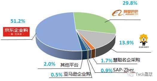 除了京东商城在下沉市场寻找增量外,刘强东将7Fresh等线下商业列为2019年最关注的目标,但是截止2018年底才开7家店的7Fresh等,可以说并不能成为京东营收增长重要推动力。相反京东有一块业务发展很快,并且以51.2%的市场占有率排名国内第一,这块业务就是京东大公司业务发展而来的“京东企业购”。