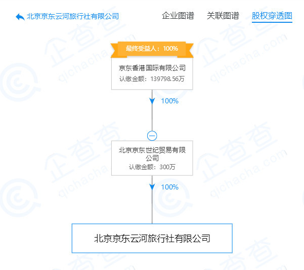 腾讯科技讯 4月9日,据企查查数据显示:北京京东世纪贸易有限公司新成立一家北京京东云河旅行社有限公司,该公司成立于2019年4月8日,注册资本300万元。