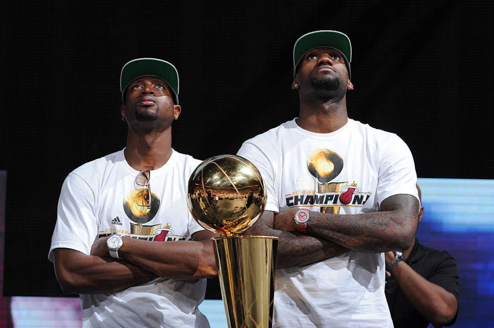 在热火三巨头合作的第一年,韦德跟詹姆斯之间的兼容性一般,两人都需要有球在手才能发挥最大威力。在冲冠失败后韦德做出牺牲,让出了球权和老大的位置,他的牺牲成就了热火。