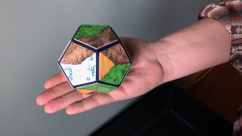 这款桌游的理念,在平面上用普通的地形格系统、或是卡片替换系统也能很好地实现,但是其 12 面体的星球设计着实平添了一番别样的趣味,更是为《我的星球》这款桌游加上了一个吸睛的属性。将小小的星球拿在手中翻转观察,你需要不断注意自己的地形发展,不断考虑接下来的选择。很多时候,随着一块新的地形格加入,之前隔断的地区又神奇地连到了一起。立体的板块设计着实对游戏性和玩家策略有着强烈的冲击。