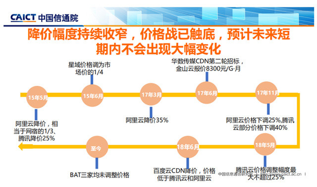 胡海波指出,“从2018年截止至今,整个价格战幅度持续收窄,目前包括百度、阿里、腾讯在内的企业在CDN收费上相差的幅度都不大。经过这几年的发展,截至2018年底,整个市场价格相对来说比较稳定。”