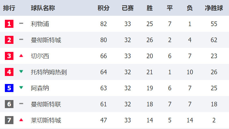 从英超积分榜情况来看,切尔西多赛一场排名第四,热刺、阿森纳和曼联分别排名第四到第六,前四名的争夺尤为激烈。