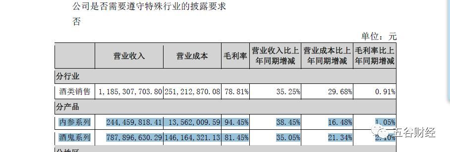 数据显示,与酒鬼系列81%左右的毛利率相比,内参系列的毛利率接近95%。