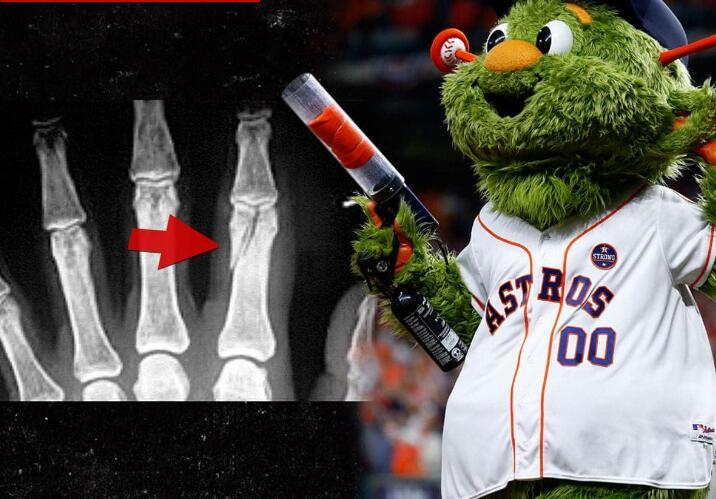 据这位叫詹妮弗的球迷介绍,2018年7月她在观看休斯顿的一场比赛中,吉祥物Orbit使用“球衣炮弹”互动时砸伤了她的左手,导致食指骨折。
