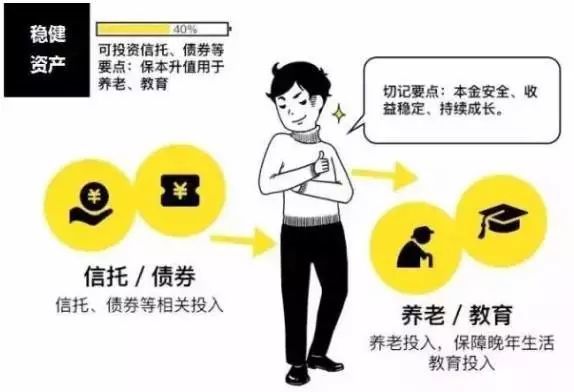 Tips:这个账户关键在于合理的占比,一般占家庭资产的 40%,也就是要赚得起也要亏得起,无论盈亏对家庭不能有致命性的打击。