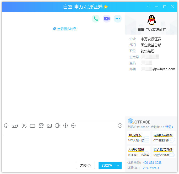 本文来自全天候科技,阅读更多请登陆www.awtmt.com或华尔街见闻APP。作者|舒虹编辑|安心近期,金融OTC(场外交易)交易员和金融机构在使用企业QQ时会发现一个现象:原本位于QQ聊天窗右面版的个人信息页,将被替换为QTrade金...