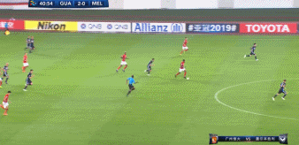 同时,广州恒大能做到不丢球,依靠的是高质量的低位防守。墨尔本胜利在左路形成三角配合,意在通过局部渗透打穿恒大防线。但恒大防守非常严密,两名中卫+内收的郜林也在中路盯防对方的双前锋。在恒大有序的防守体系下,墨尔本胜利难以完成向前渗透,只能回传给中后卫重新组织。