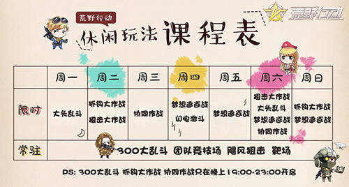 除此之外,更新后还对休闲玩法的排期进行了调整,玩家们可以根据休闲玩法最新的“课程表”合理分配一周的刚枪时间,每天都有不同的游戏体验。