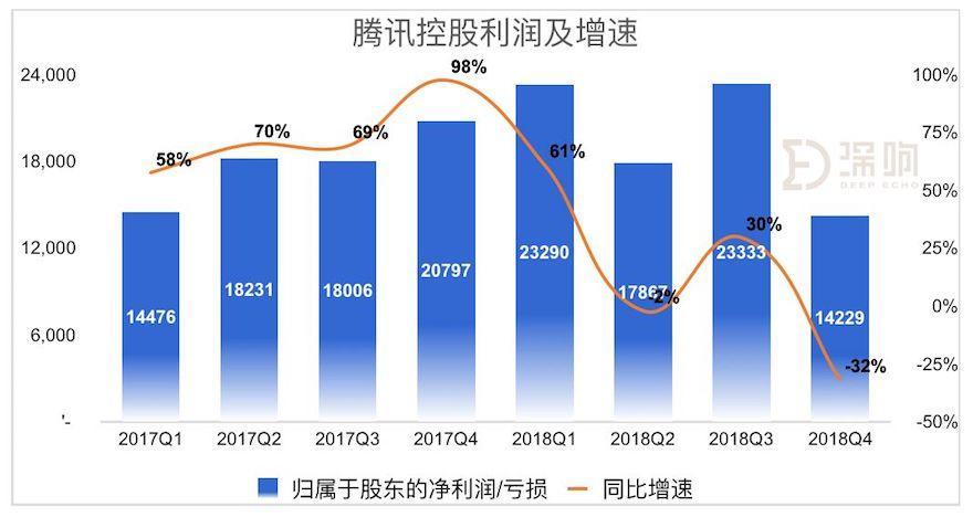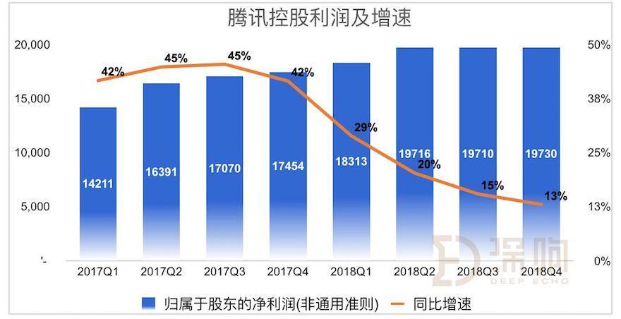 因此,我们看到腾讯自2017年第一季度,在非通用准则下归属于股东净利润仍然是呈现持续增长状态,只是考虑到其体量因素,在2018年增速呈现放缓,但并没未发生真正意义上的利润大幅下跌。
