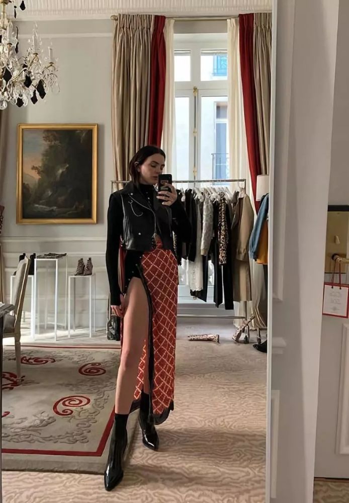侧开叉半身裙绝对是最佳显腿长武器,但是下图实穿性不强。