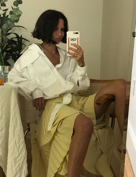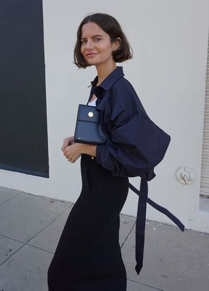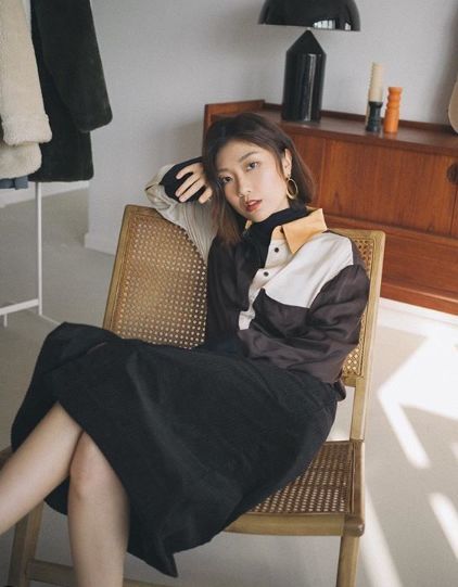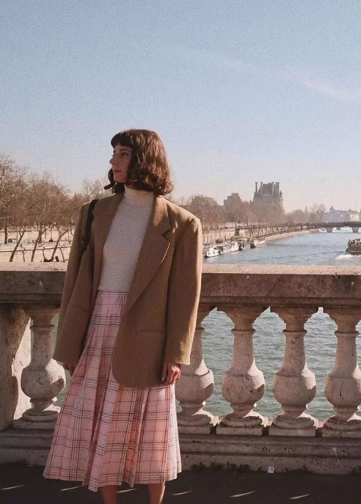 但是以上搭配方法不适合我们凡人,不能凸显比例,而且还有些压个子。不如试试解开衣扣,露出里面将上衣塞进裙子里的搭配,腿长立马一米八。