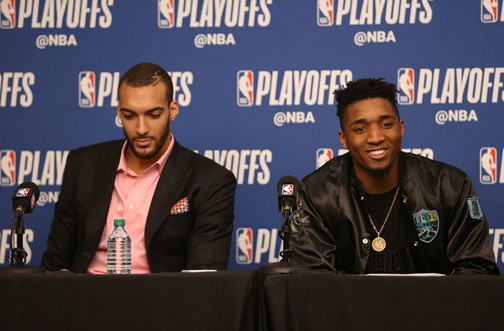 2017-18赛季戈贝尔和米切尔出席季后赛发布会