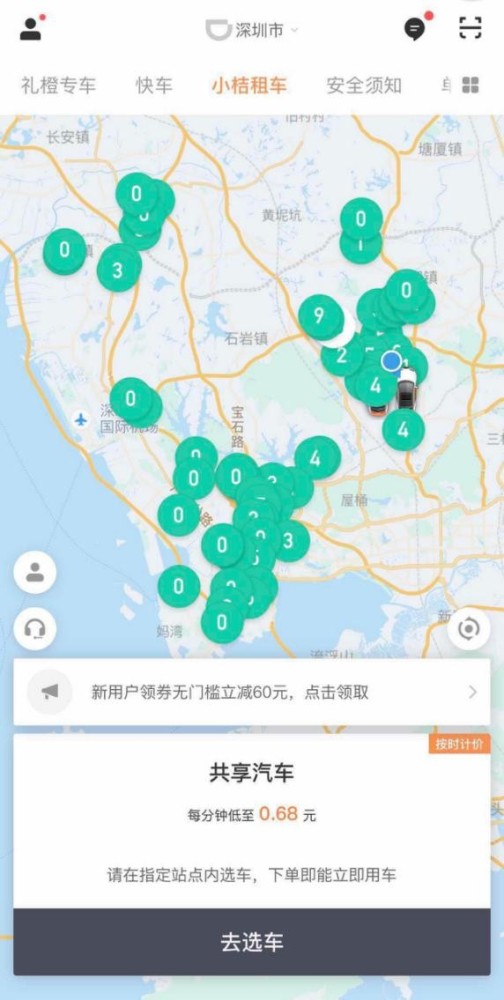 此次小桔租车在深圳和长株潭各设立了60个和40个车辆取还点,总计有近400辆共享汽车投入使用。四地城市用户均可通过滴滴出行App、微信钱包内滴滴出行小程序等入口进入,无需押金即可在线订车,并可自由选择附近的停车网点随时取还车辆。