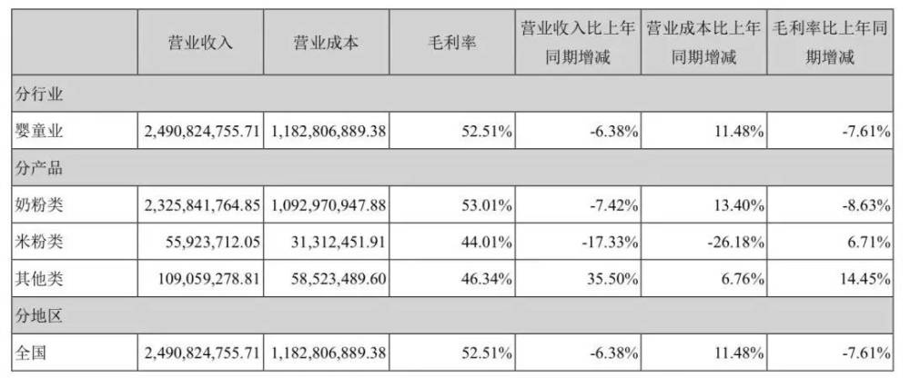 不过财报显示,贝因美扭亏为盈主要依赖财务调整而非主营业务收入,其主营产品是奶粉和米粉的销售,营收分别同比下降了7.42%和17.33%,而其他类营收则同比增加35.5%。