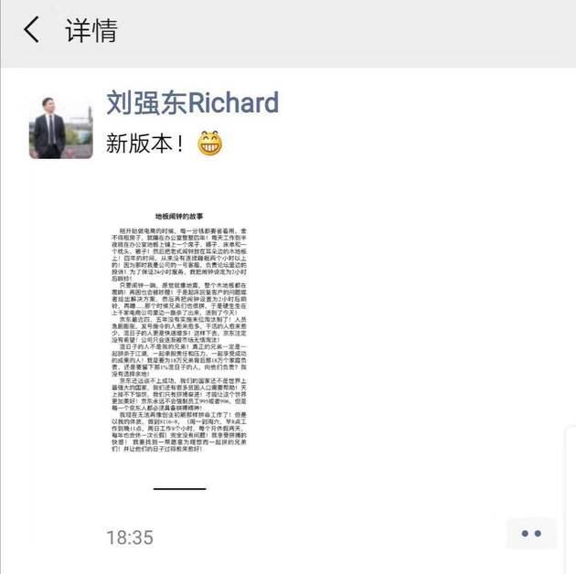 刘强东朋友圈“忆苦”:为18万家庭负责不得不做出选择