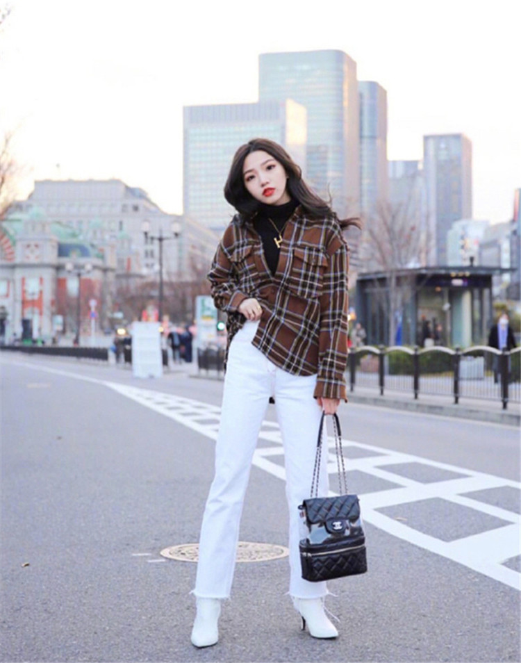 周末出行大作战,衬衫叠穿小高领,是天冷的时候,最容易复制的街拍造型。选择这身搭配,小仙女就再也不用担心倒春寒的问题了。配上白色直筒裤和白色高跟短靴,尽显高贵大气的女人味。