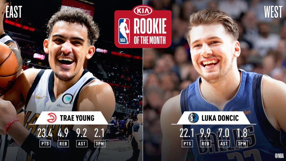 NBA公布月最佳新秀:特雷杨和东契奇携手入选