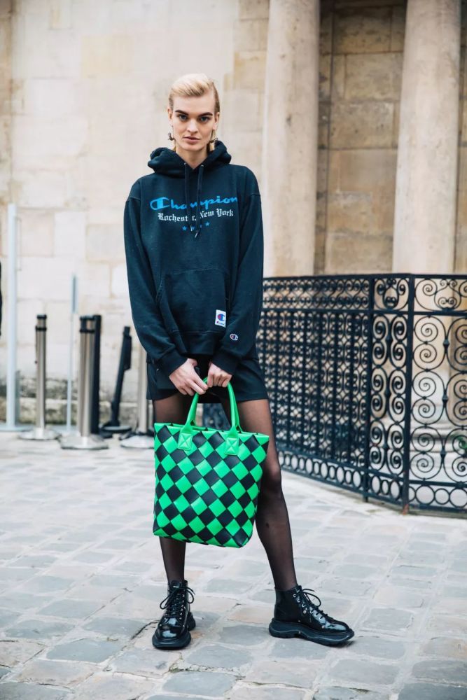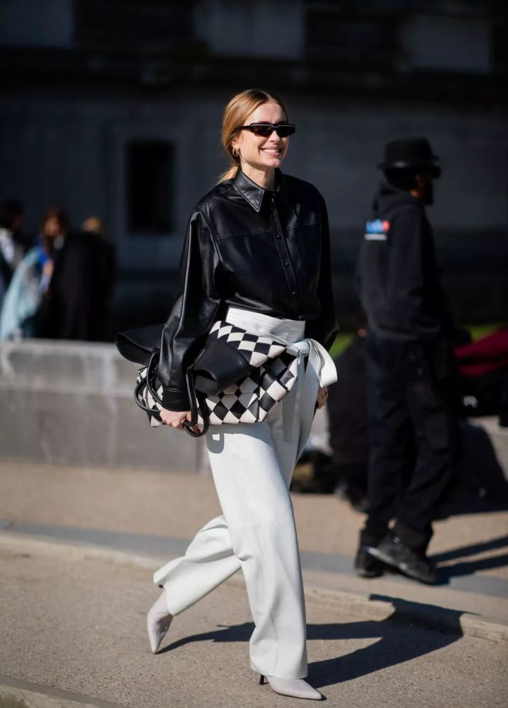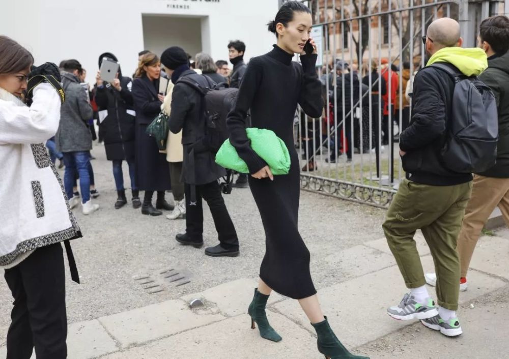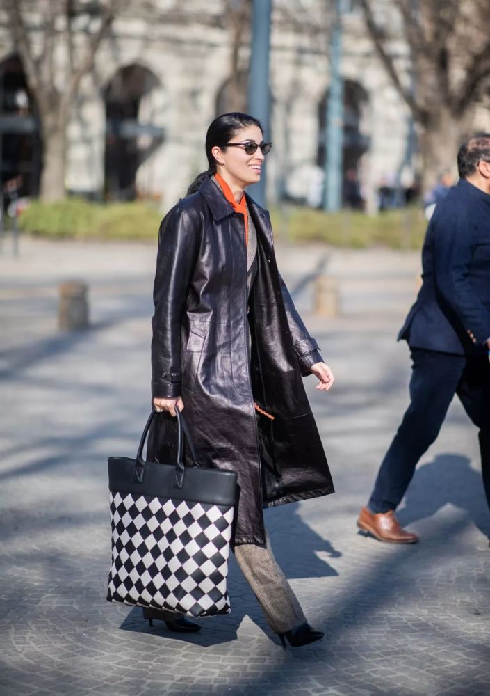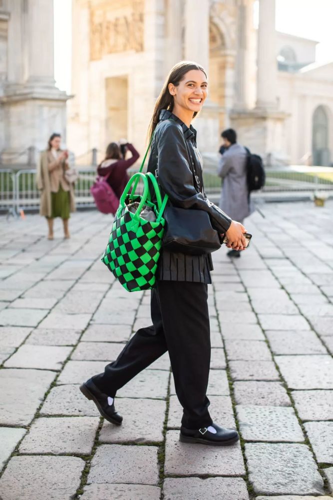 Daniel Lee带来的另一款作品则是新款The Maxi Cabat手袋,从街拍就可以看到,这款手袋属于经典不过时,好看、百搭又实用的款,既可以手提,也可以单肩背,将它对折当作手拿包也完全ok,纵横交错的经典编织元素以色彩对比强烈的拼色来演绎,更是为它的时尚属性增添了更多的可能性。