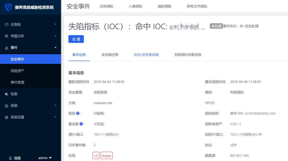图:腾讯御界高级威胁检测系统攻陷警报