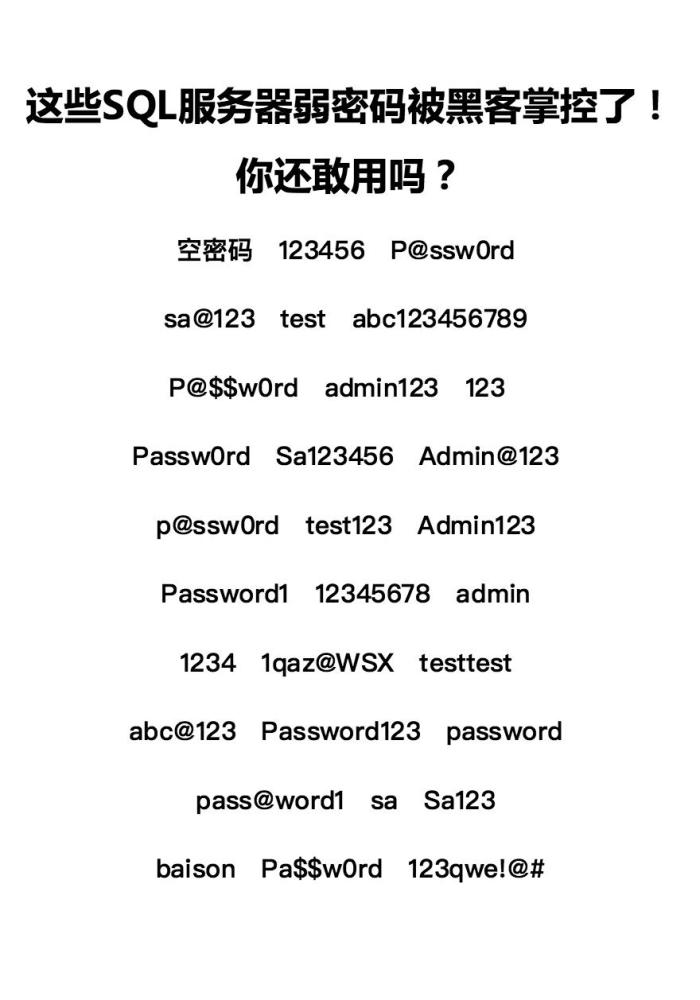 图:SQL服务器常见弱密码明细