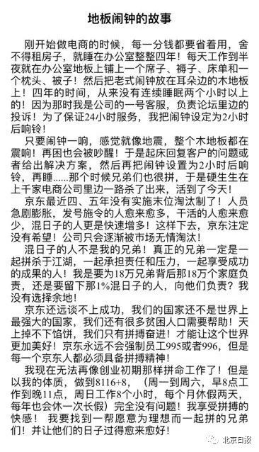 “京东永远不会强制员工995或者996,但是每一个京东人都必须具备拼搏精神!”