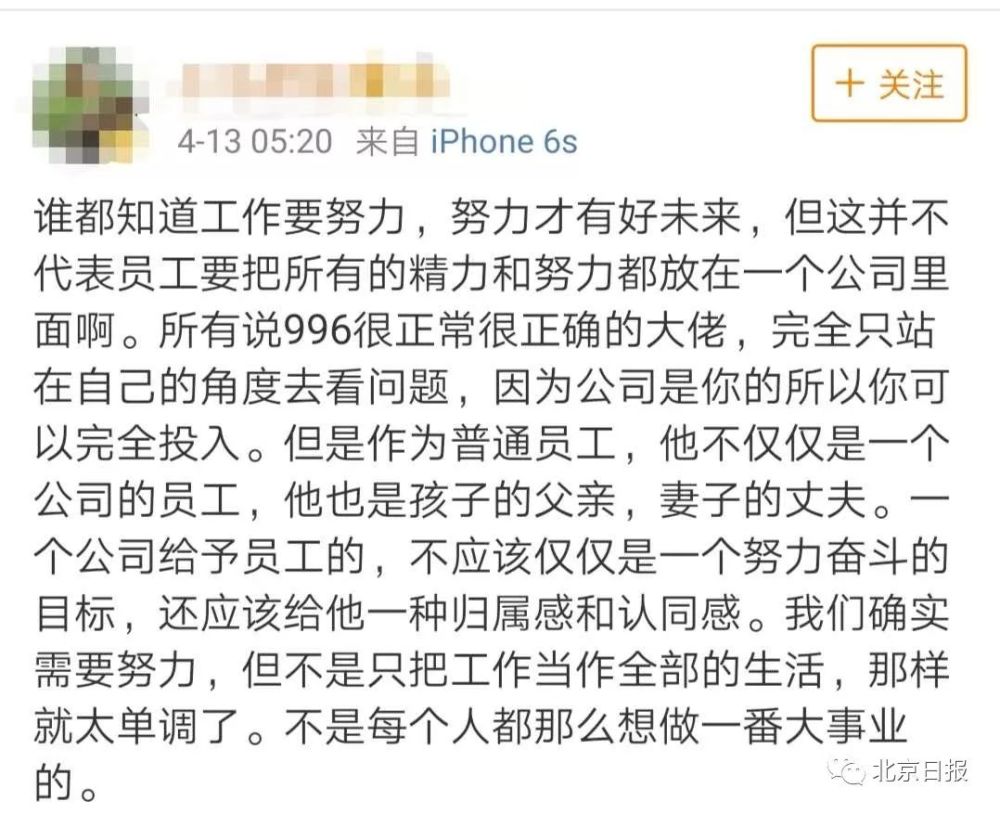 1、每天不算路途,11小时工作时长,那恋爱,家庭,社交无暇,而这是生活的目的,还是为工作高价值的调节,正是一张一弛啊。