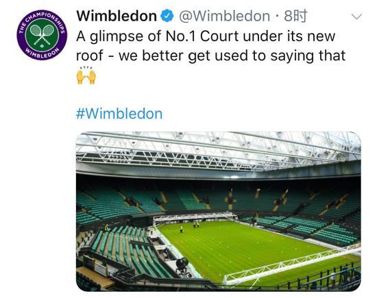 今天,温布尔登网球锦标赛在官方推特发布图文,宣布一号球场可开合屋顶落成。至此,拥有上百年历史的温网草地赛事有了两座具备可开合屋顶的比赛场馆,可保证在下雨天部分比赛得到顺利进行。