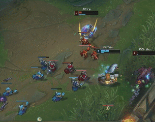 然而对方22分钟、29分钟连续依靠阵容优势成功rush大龙并带线推进。数次交战后我方下路告破。