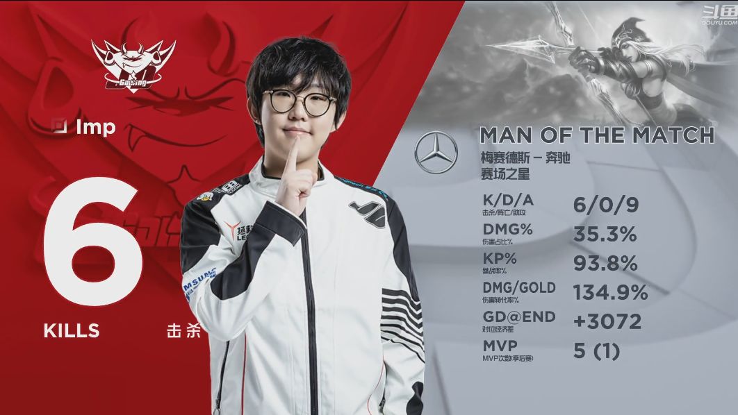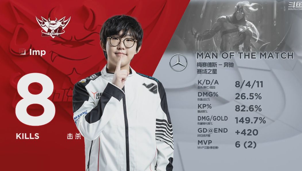 在我方成功rush大龙后一波推进,imp再次秒杀对方大嘴,直接结束比赛,将比赛拉入决胜局!