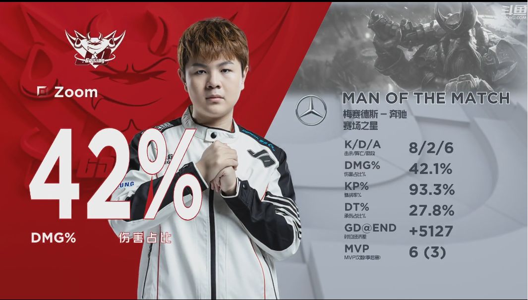 后期zoom再次天神下凡,一波绕后,击杀敌方双人,我方随之强势推进,击破对方水晶。我方以3比2战胜FPX。