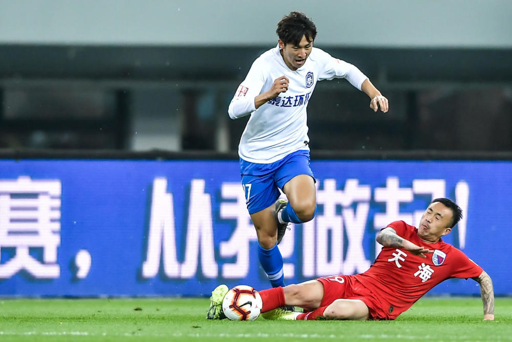 天津德比中,王永珀飞铲谢维军