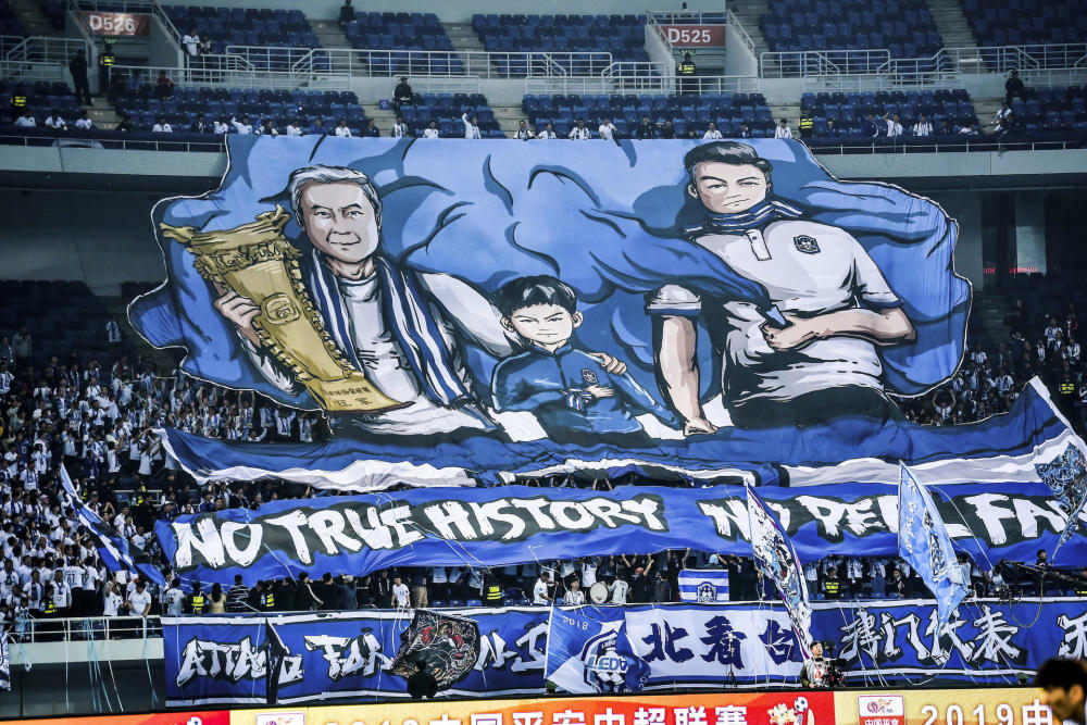 本赛季,权健从昔日的“贵族”堕落为一穷二白的天海,泰达球迷也抓准机会对死敌进行了揶揄。本场德比之战,泰达球迷适时在看台上展示出“没有真正的历史,就没有真正球的迷”的巨型TIFO,配图则是很有象征意义的祖孙三代泰达球迷。虽然标语写的很委婉,但是在德比战挂出这样的TIFO,还是令人浮想联翩。除此之外,在球迷会下面的条幅中,“津门代表”四个字也分外显眼。