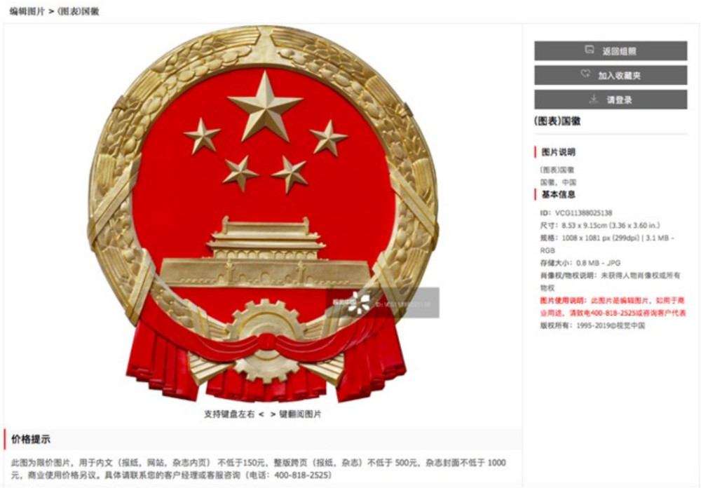 2、视觉中国上为什么会出现国旗、国徽类照片,且被明码标价?
