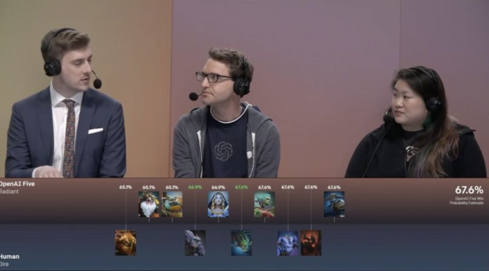 系统给出的 OpenAI Five 的胜率为 67.6%。