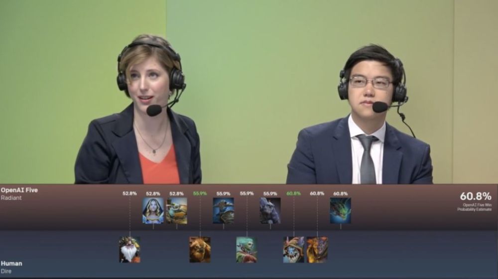 此局比赛,OpenAI Five 预测胜率为 60.8%。