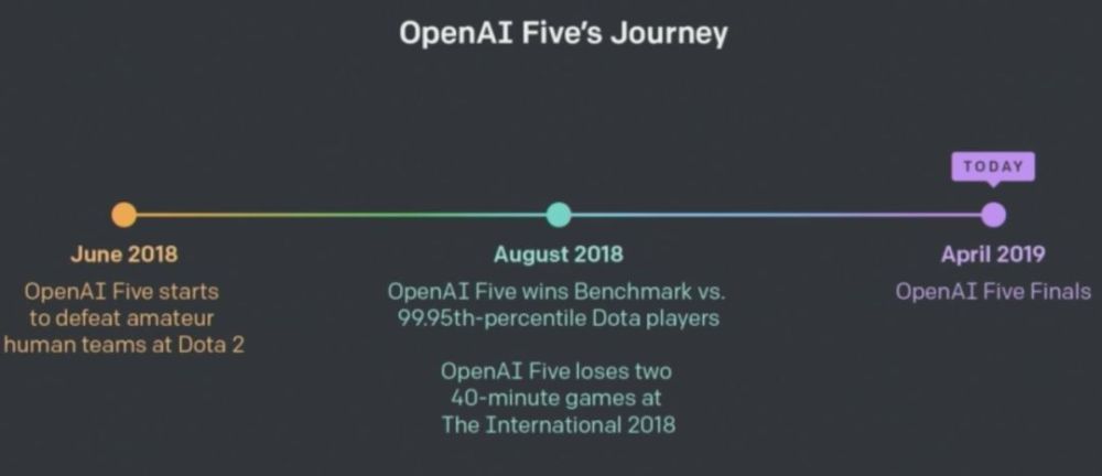 随后,OpenAI Five 就开始尝试在 5v5 团队赛中挑战顶尖团队,它希望和人类遵守相同规则、获取类似地图信息的情况下取得更多的创造性。如下为 OpenAI Five 的发展历程,今天的这场比赛是它与人类的最终决战。
