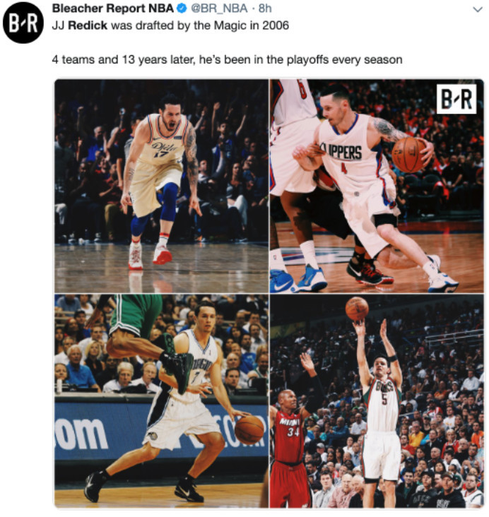 虽然全场三分球4投1中,只得到了5分,但今天的比赛,是雷迪克连续第13个赛季,在季后赛命中三分球,排名现役球员的第一名。不过,雷迪克所在的球队,从来没有走的很远,这倒是一个不争的事实。如果你有印象,季后赛雷迪克总是会有几场铁出天际。