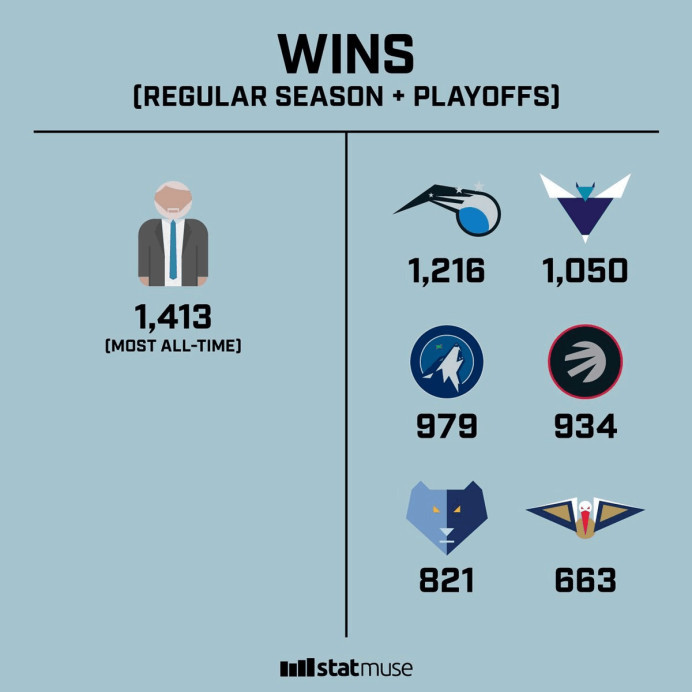 经验这东西,有时候你还别不信,就和你玩游戏一样,你级别越高,一般来说,你就越厉害。谁能想到,波波维奇一个人的执教总胜场数,比魔术、黄蜂、森林狼、猛龙、鹈鹕、灰熊都要多?