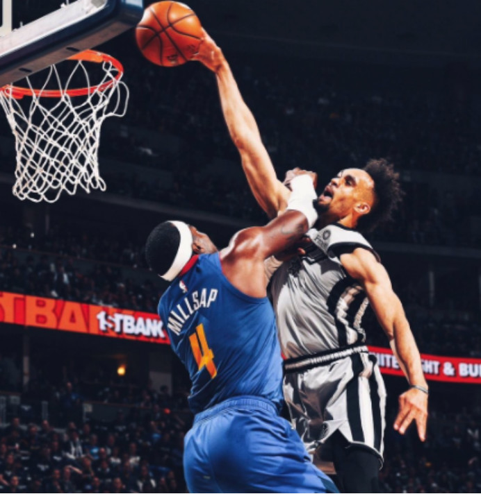和魔术、篮网一样,马刺能够笑到最后,也是全队的功劳。这场比赛,德里克-怀特面对掘金的最强防守人米尔萨普,曾经奉献了一记单臂隔人暴扣,技惊四座。