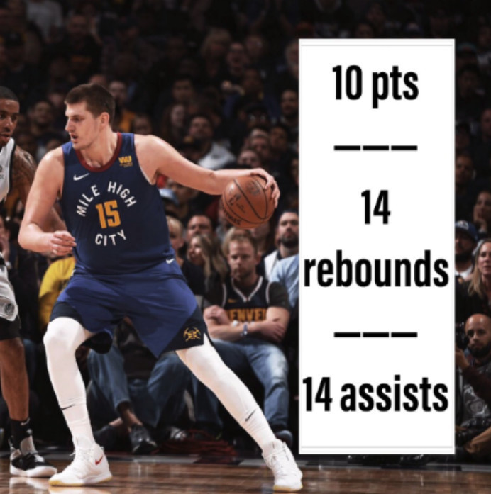 而掘金中锋约基奇,虽然季后赛首场就拿下了10分14篮板14助攻的数据,比肩勒布朗-詹姆斯,但全场仅仅9次出手,掘金想要走的更远,约基奇还得更多的去得分才行。