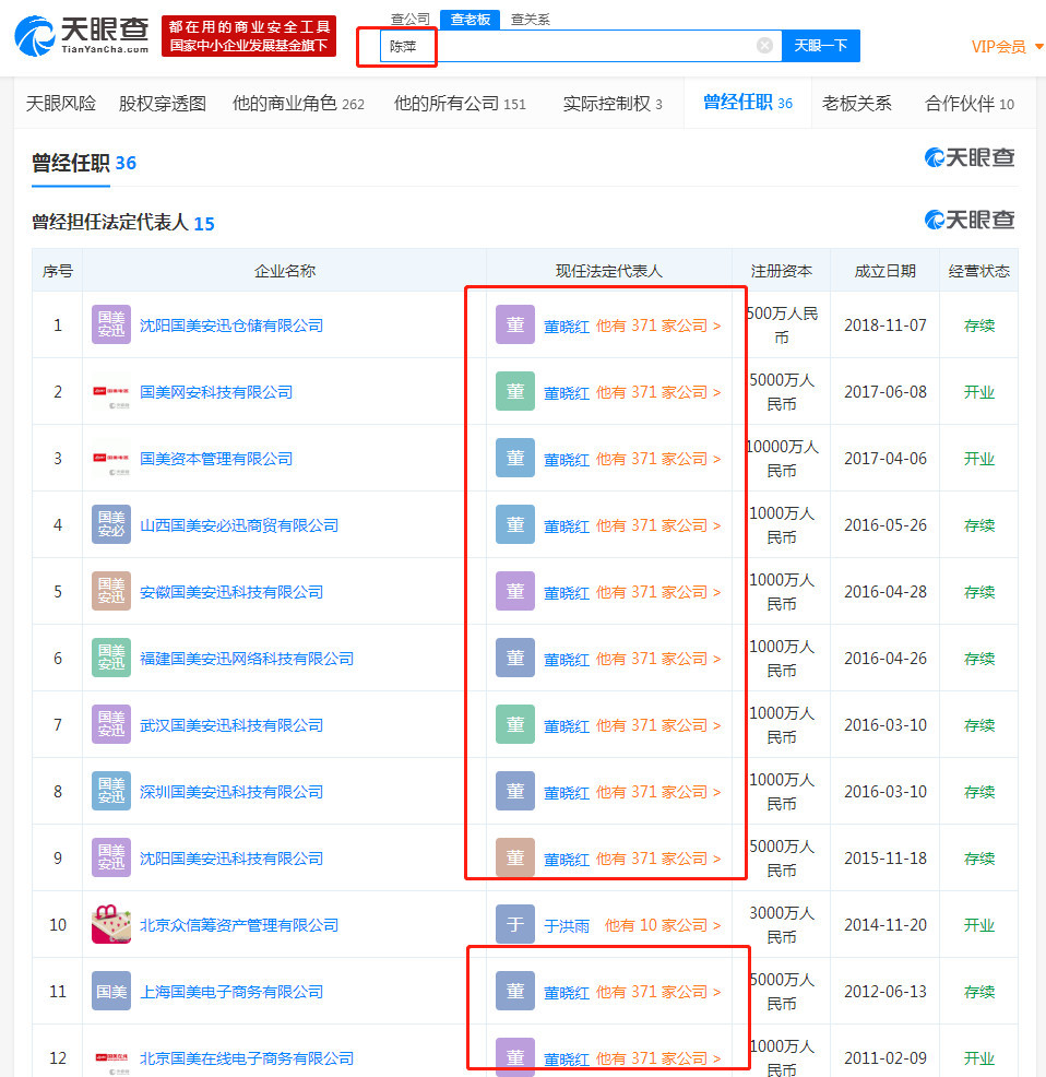 腾讯科技讯 4月14日消息,天眼查数据显示,2月7日至今,多家国美系公司发生法定代表人变更,包括北京国美在线电子商务有限公司、深圳国美安迅科技有限公司等13家,法定代表人都由陈萍变更为国美电器有限公司法定代表人、董事长董晓红。