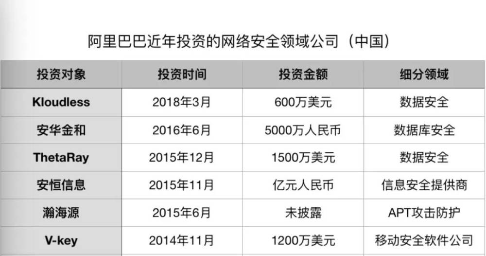 因此,阿里近几年在国内外对“白帽子”进行多次投资与并购,企图构建健全的网络安全保障。优质投资标的就包括安华金和、ThetaRay以及安恒信息。