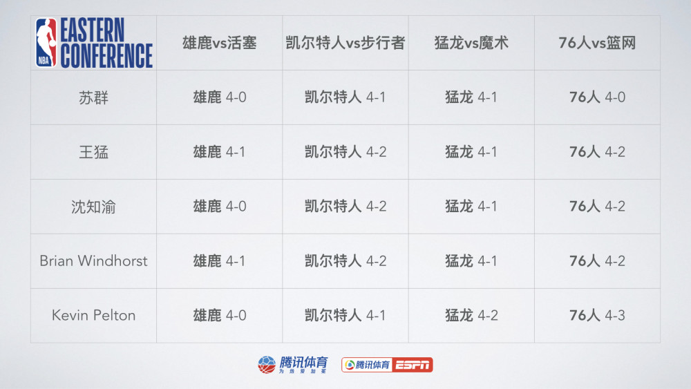附:季后赛首轮每组对决胜负及大比分预测