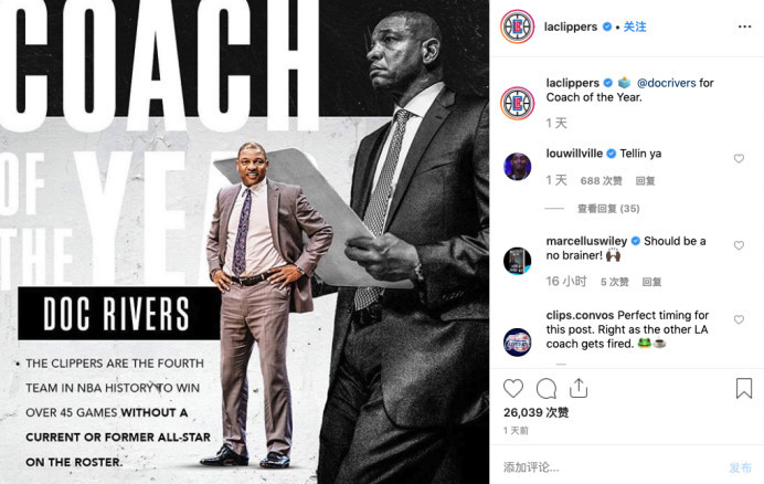 虽然快船输球,但这支球队仍然值得尊重。这支球队没有任何一位全明星,但却拿到了48胜。在社交媒体上,快船官方也发文,力挺里弗斯拿到本赛季的最佳主帅奖项。