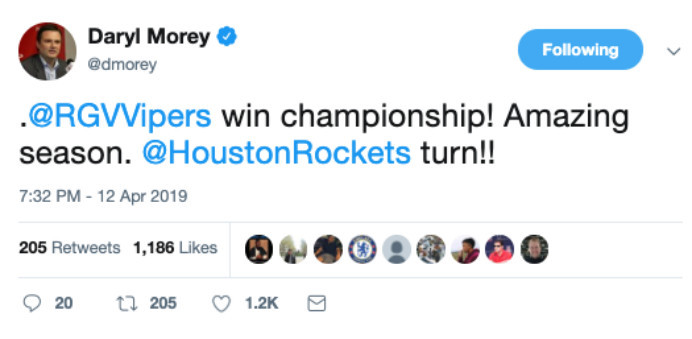 毒蛇夺冠,火箭总经理莫雷也发文,表示祝贺。在社交媒体上,莫雷就写道,“毒蛇队拿到最终的冠军,非常棒的一个赛季,现在轮换火箭队了。”