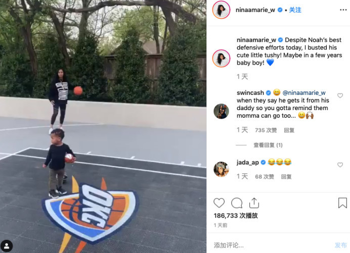虽然韦斯布鲁克的孩子还很小,但他们的家人,似乎已经开始培养小诺阿的篮球天赋了,今天在社交媒体上,韦少的妻子妮娜晒出了一段自己过掉小诺阿,然后运球上篮得分的画面。“尽管今天小诺阿在防守端非常的努力,但我还是打爆了这个小可爱,宝贝孩子,可能几年之后你可以打败我。”