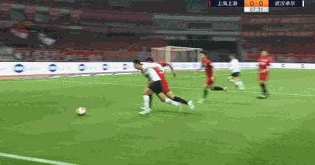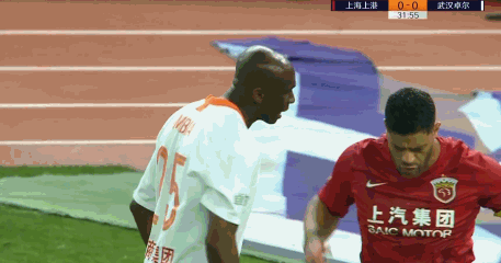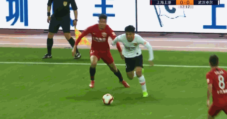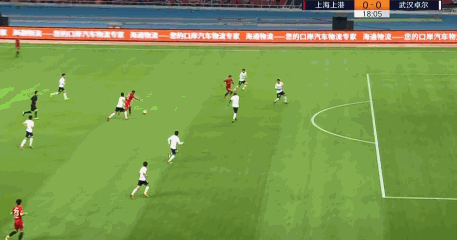 第18分钟,上港反击,胡尔克在前场中路接到贺惯直传,胡尔克随即带球转身摆脱防守起左脚劲射,皮球稍稍偏出立柱。